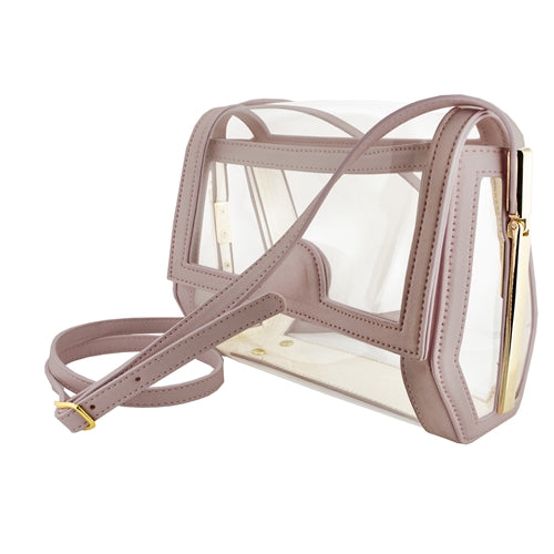 Enjoy trending style with our Geo Crossbody. Featuring a geometrically designed side panel and uniquely designed accent hardware, this bag offers one of a kind style. The main compartment is constructed of clear PVC with PU Leather accents. Personal items can be securely stored inside with the top flap magnetic closure. A matching PU Leather shoulder strap is perfect for carrying the purse as a shoulder bag or crossbody while out for the day.